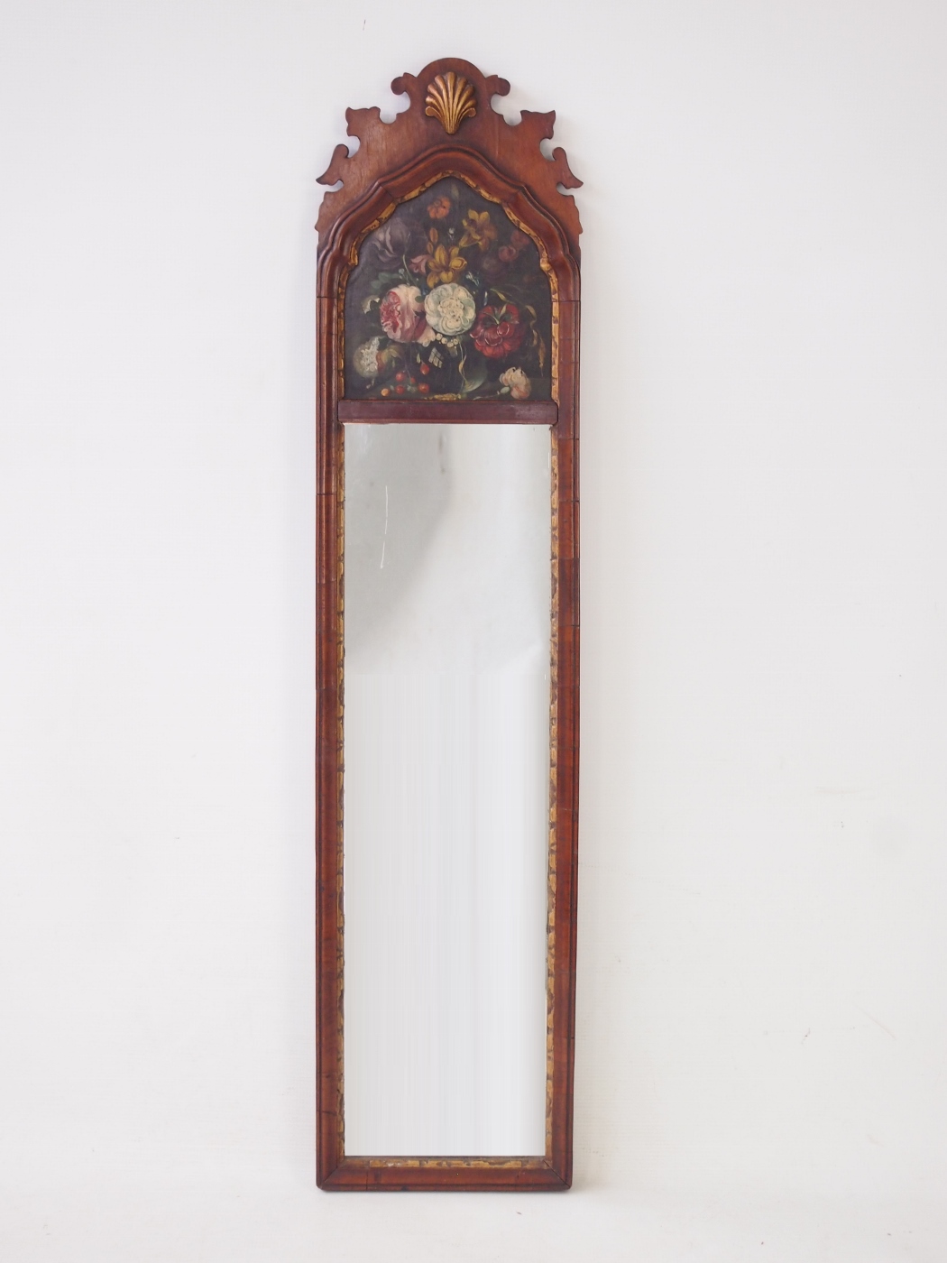 Antique Edwardian Floral Painted Fretwork Mirror c.1910