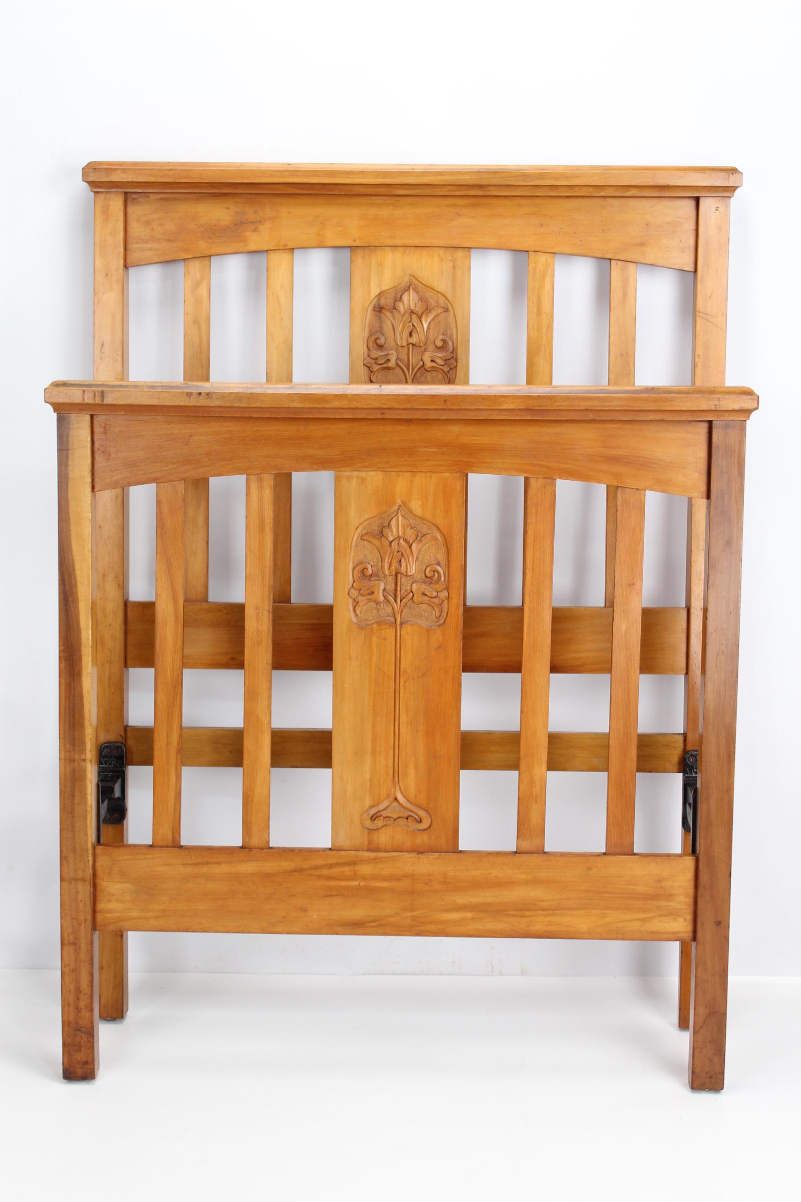 Antique Edwardian Fruitwood Single Bed