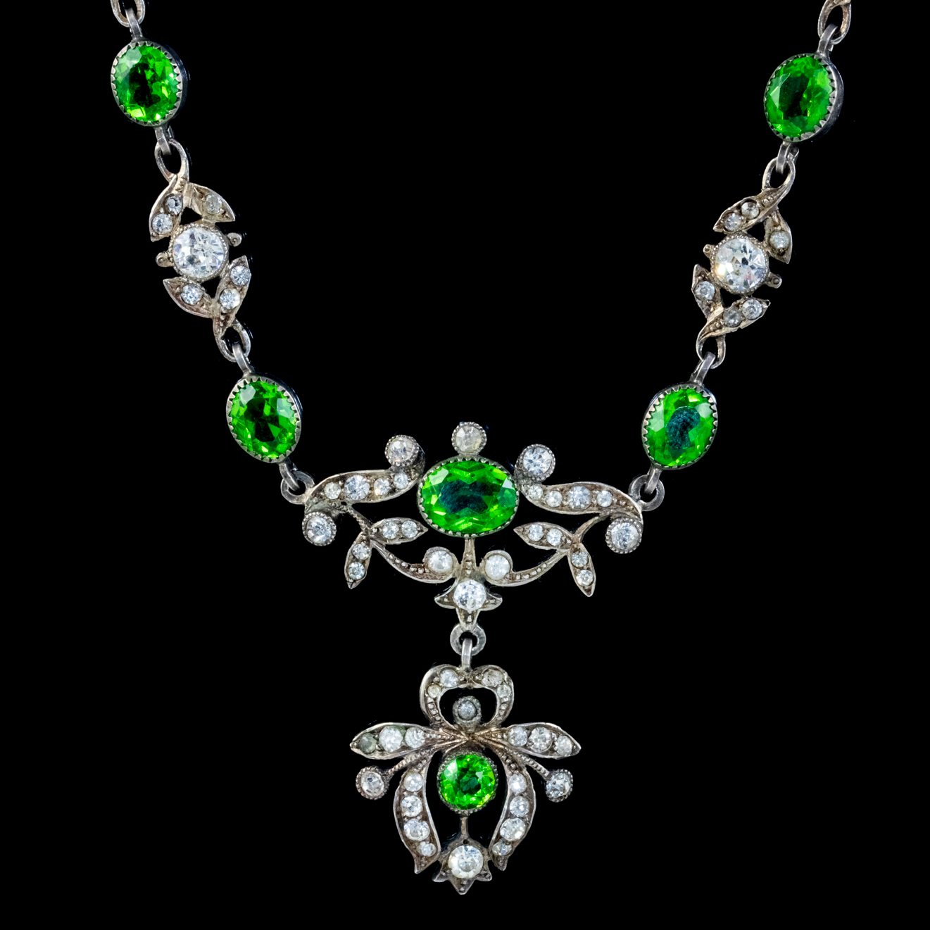 Antique Edwardian Green Paste Lavaliere Necklace Sterling Silver c.1905