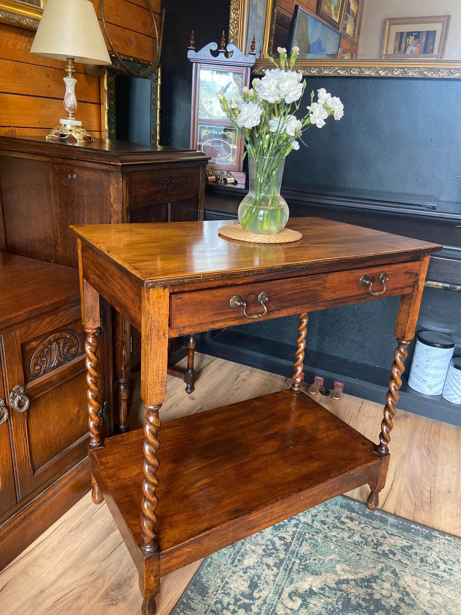 Antique Edwardian Hall Table / Barley Twist Legs / Wooden Side Table - English c.1900