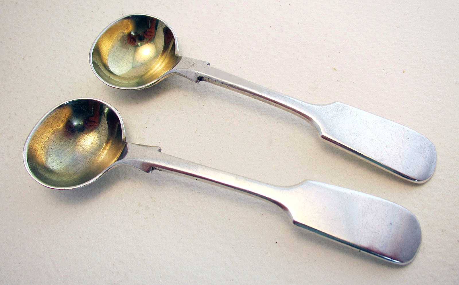 Antique Edwardian Heavy of Pair Hallmarked Solid Sterling Silver & Gilt, Salt / Mustard Spoons 1903
