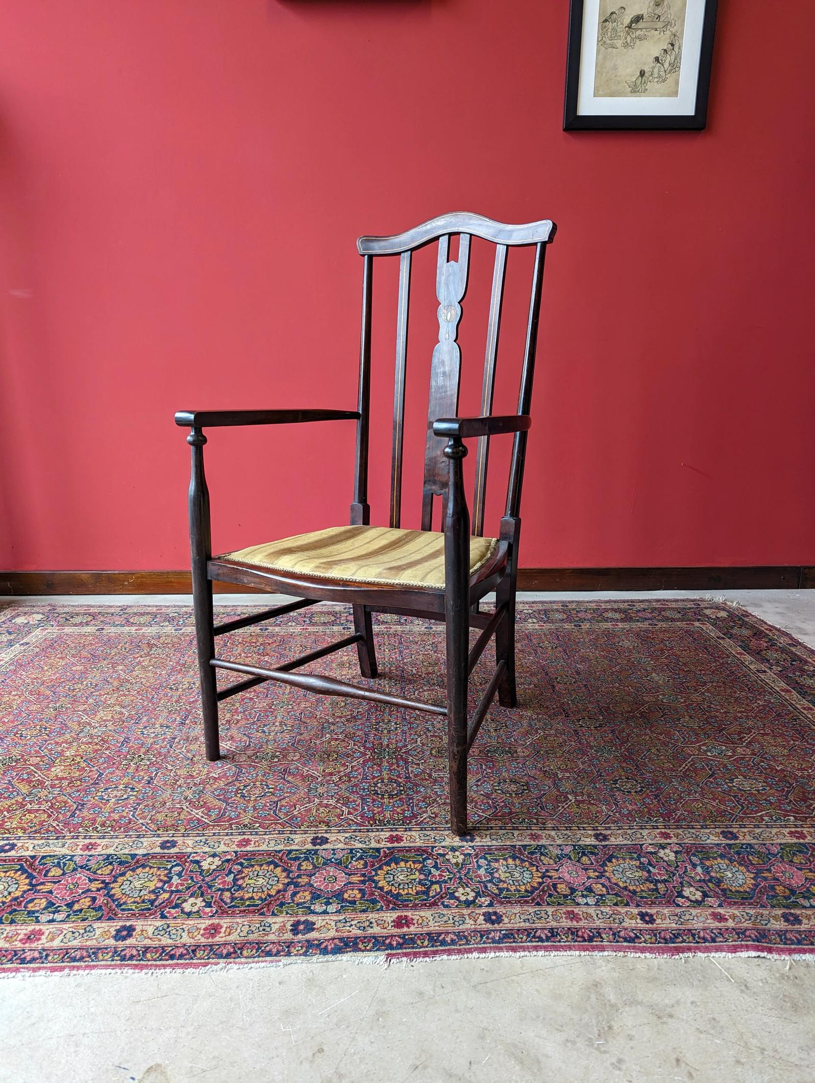 Antique Edwardian Inlaid Art Nouveau Mahogany Elbow Chair (1 of 9)
