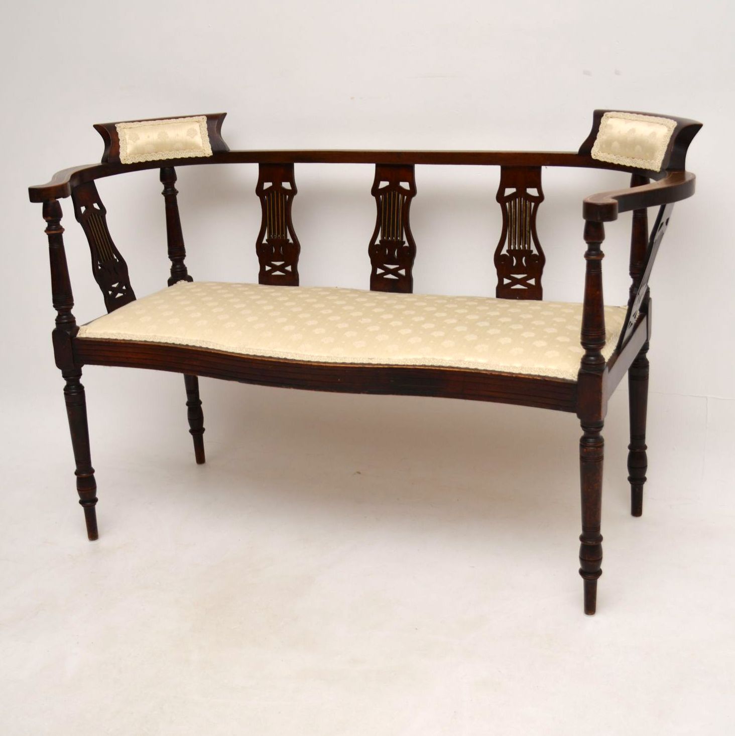 Antique Edwardian Inlaid Mahogany Bench (1 of 1)