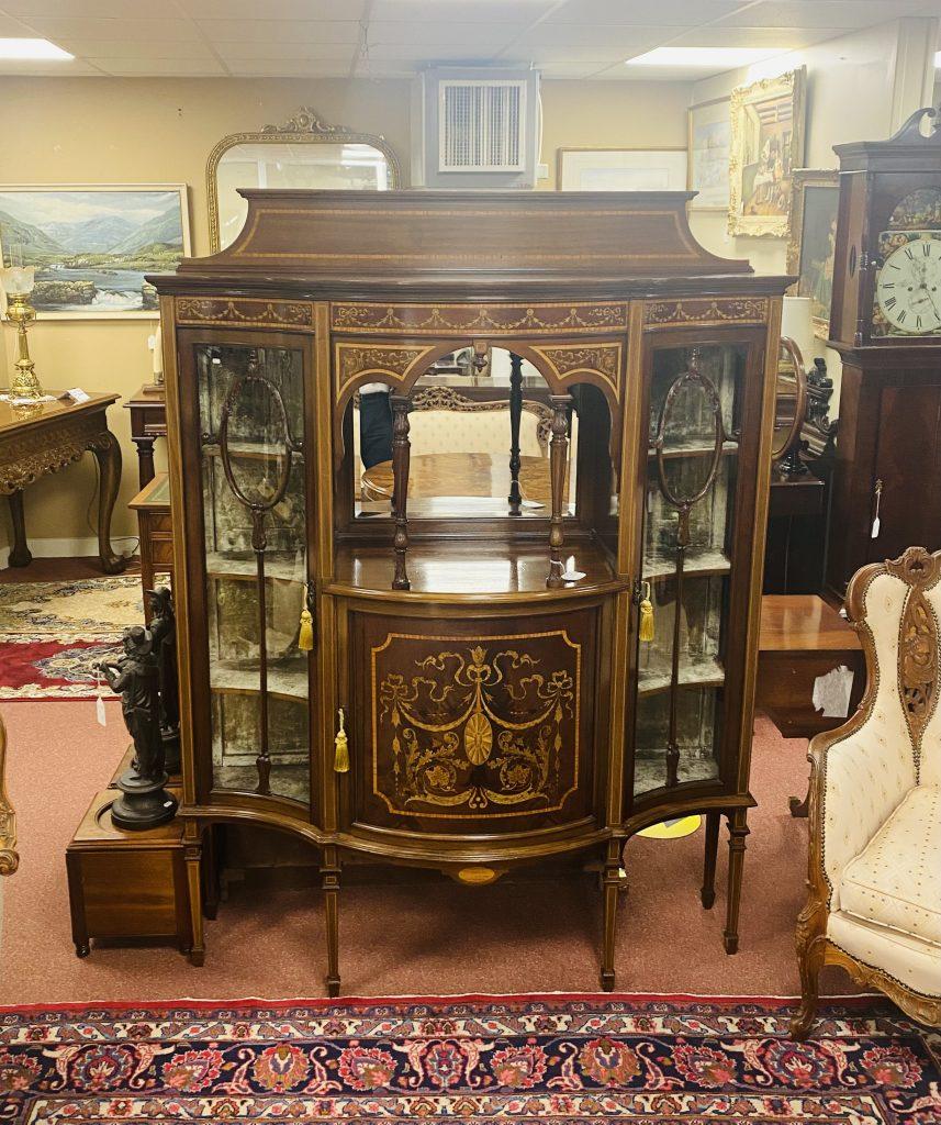 Antique Edwardian Inlaid Mahogany Bow Fronted Display Cabinet