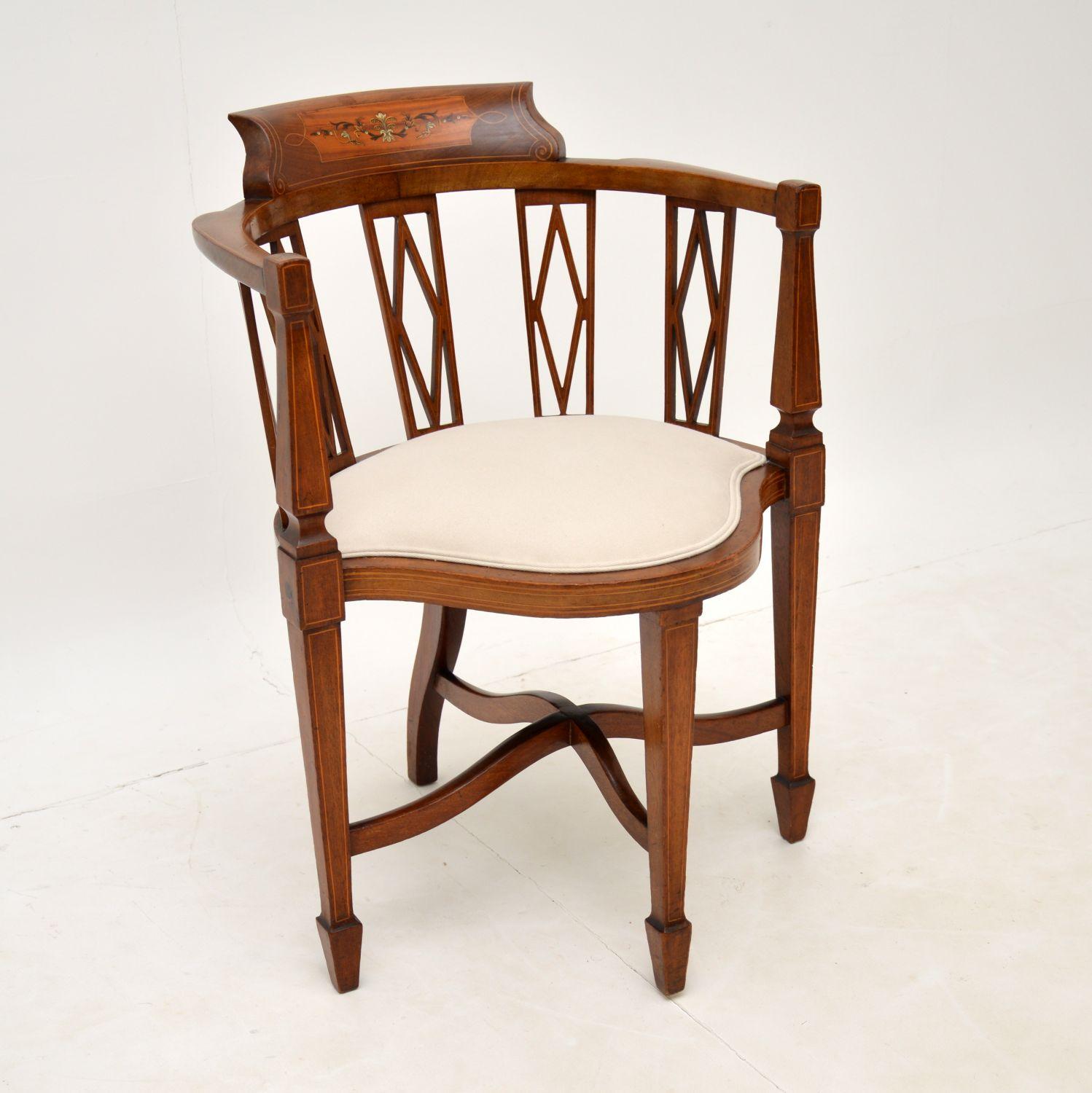 Antique Edwardian Inlaid Mahogany Corner Chair