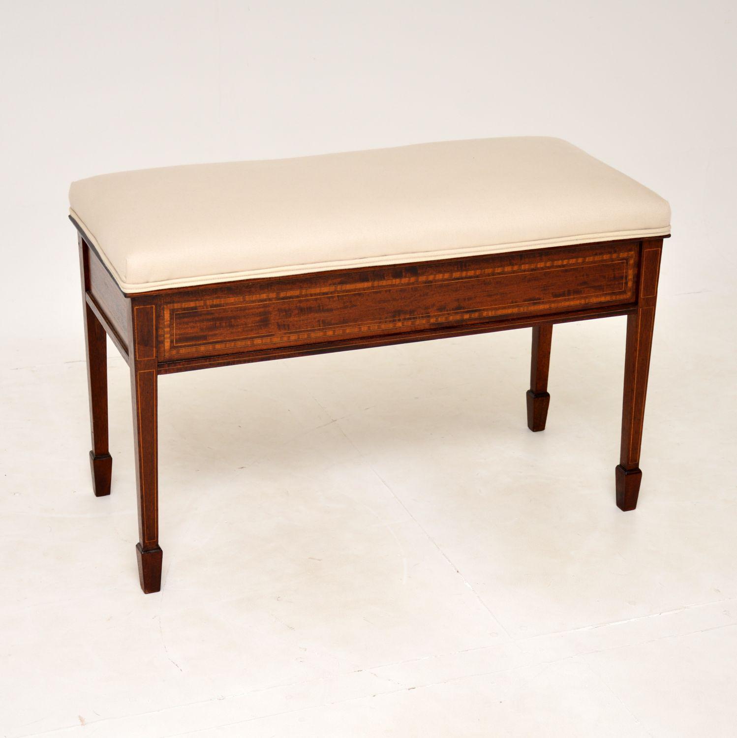 Antique Edwardian Inlaid Mahogany Duet Stool