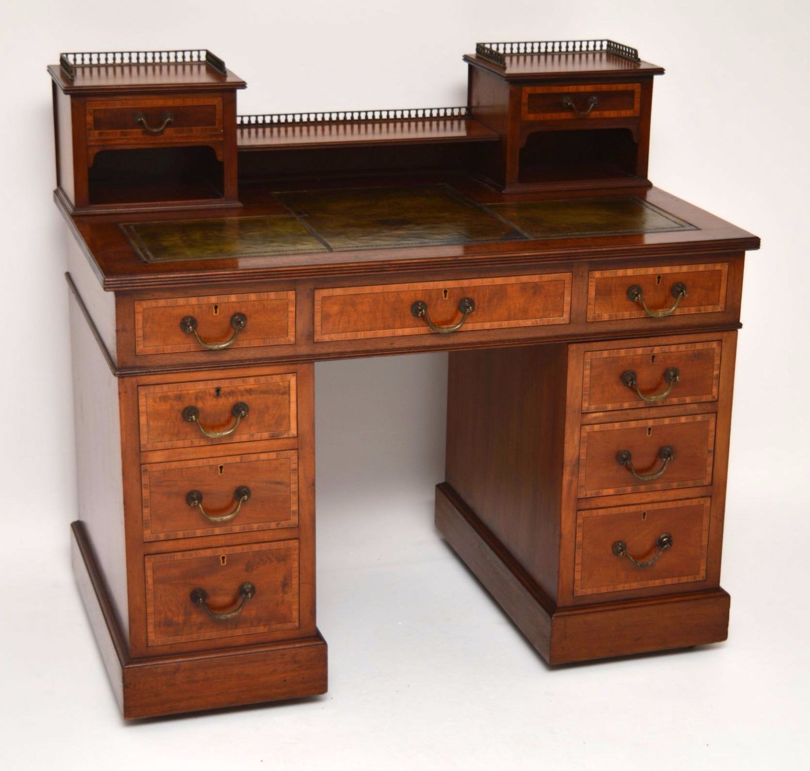 Antique Edwardian Inlaid Mahogany Pedestal Desk c.1910