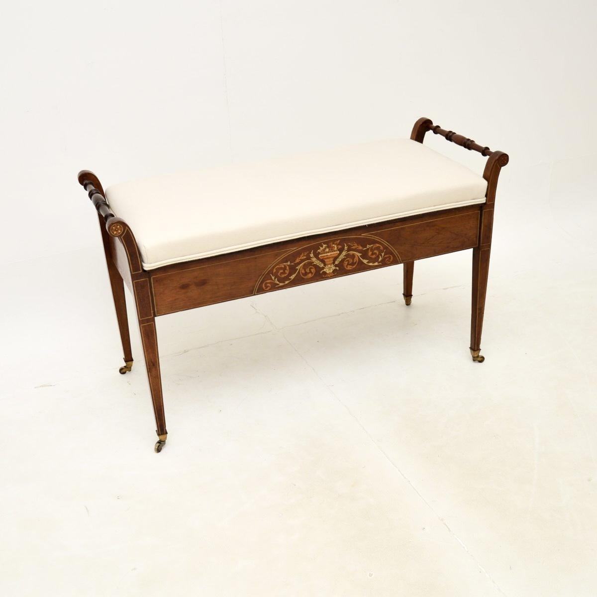 Antique Edwardian Inlaid Mahogany Piano Duet Stool