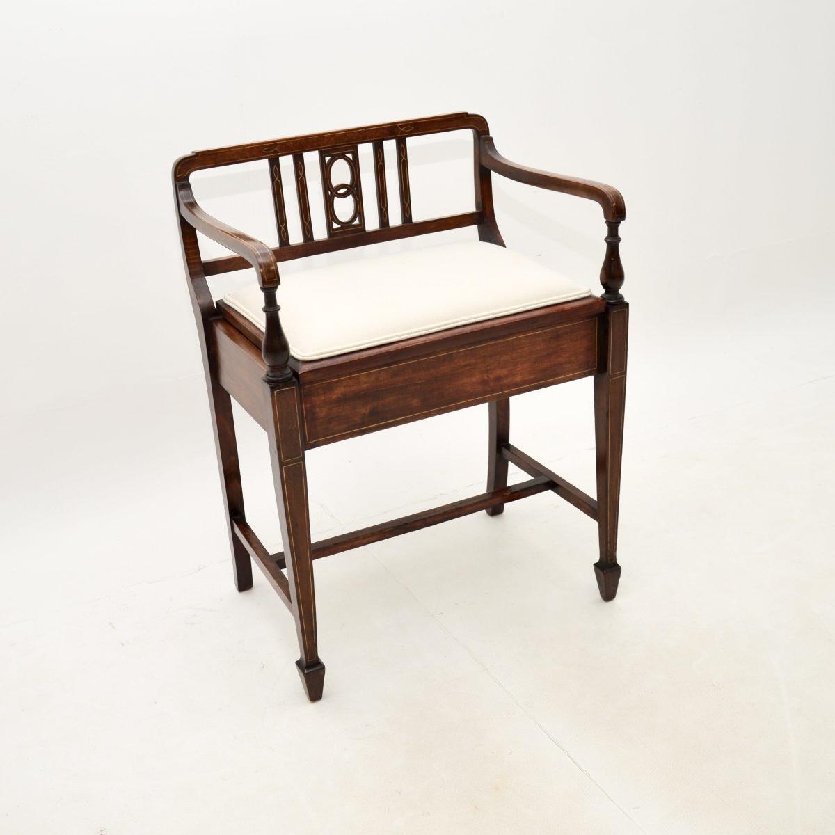 Antique Edwardian Inlaid Mahogany Piano Stool
