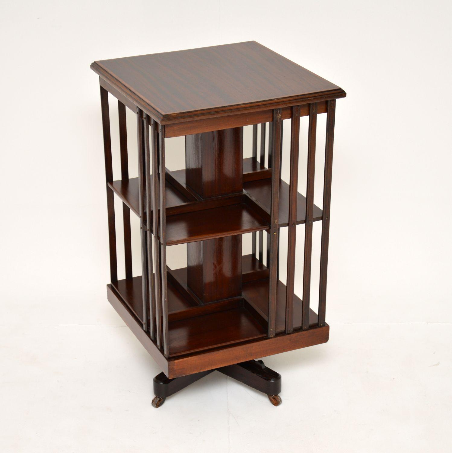 Antique Edwardian Inlaid Mahogany Revolving Bookcase