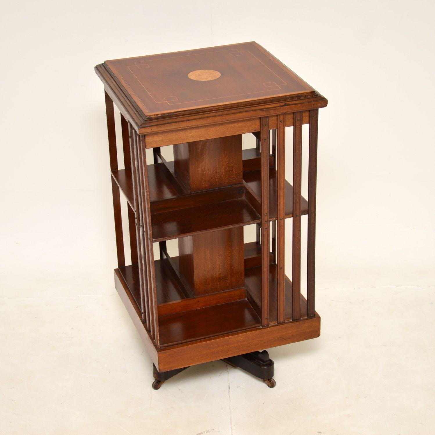 Antique Edwardian Inlaid Mahogany Revolving Bookcase