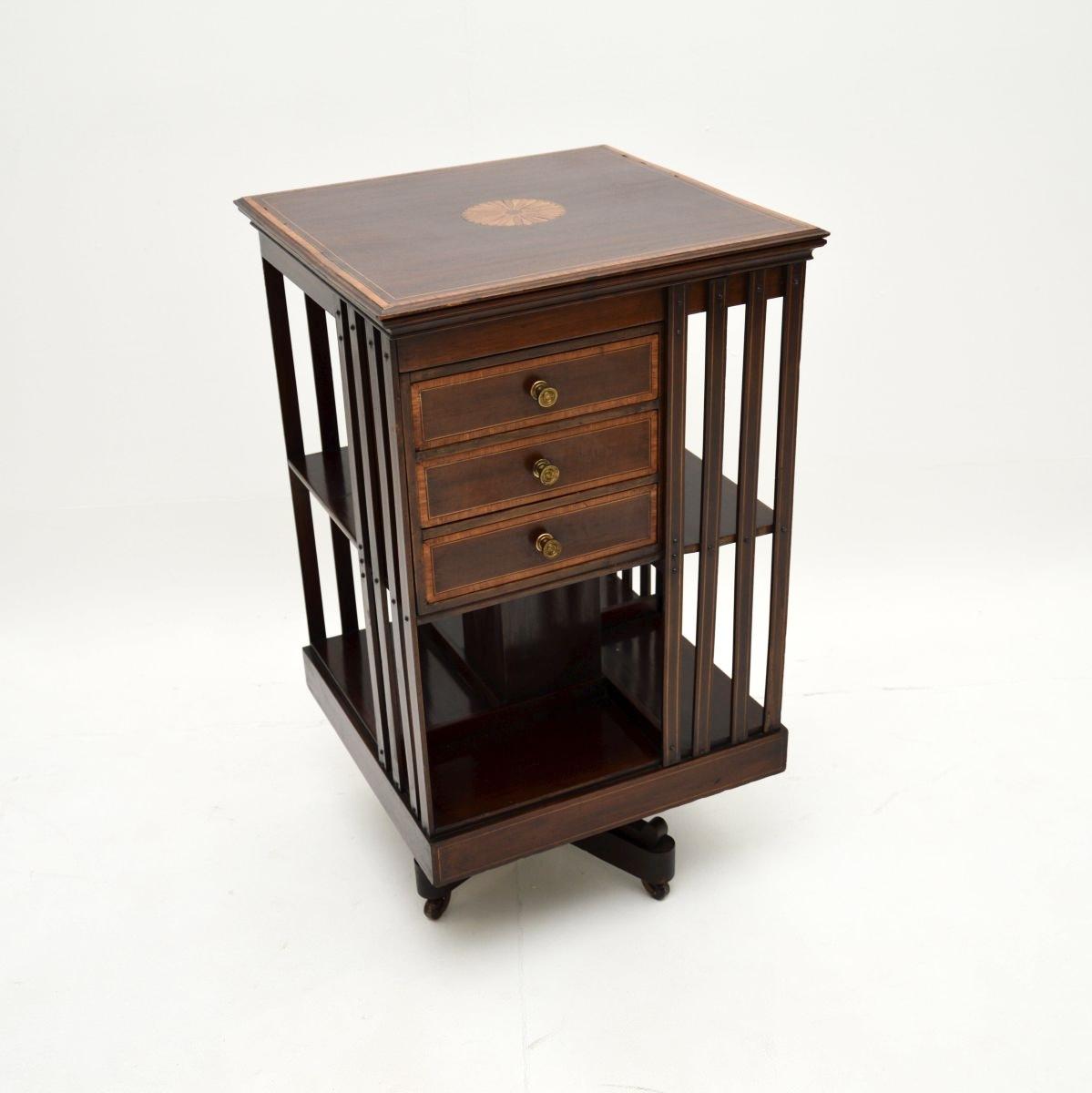 Antique Edwardian Inlaid Mahogany Revolving Bookcase