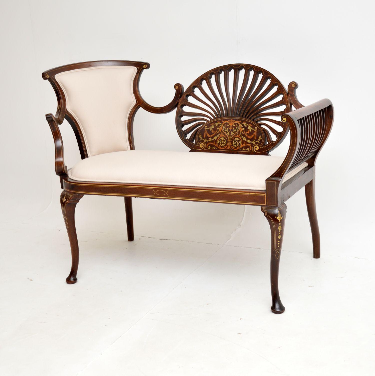 Antique Edwardian Inlaid Mahogany Settee (1 of 12)