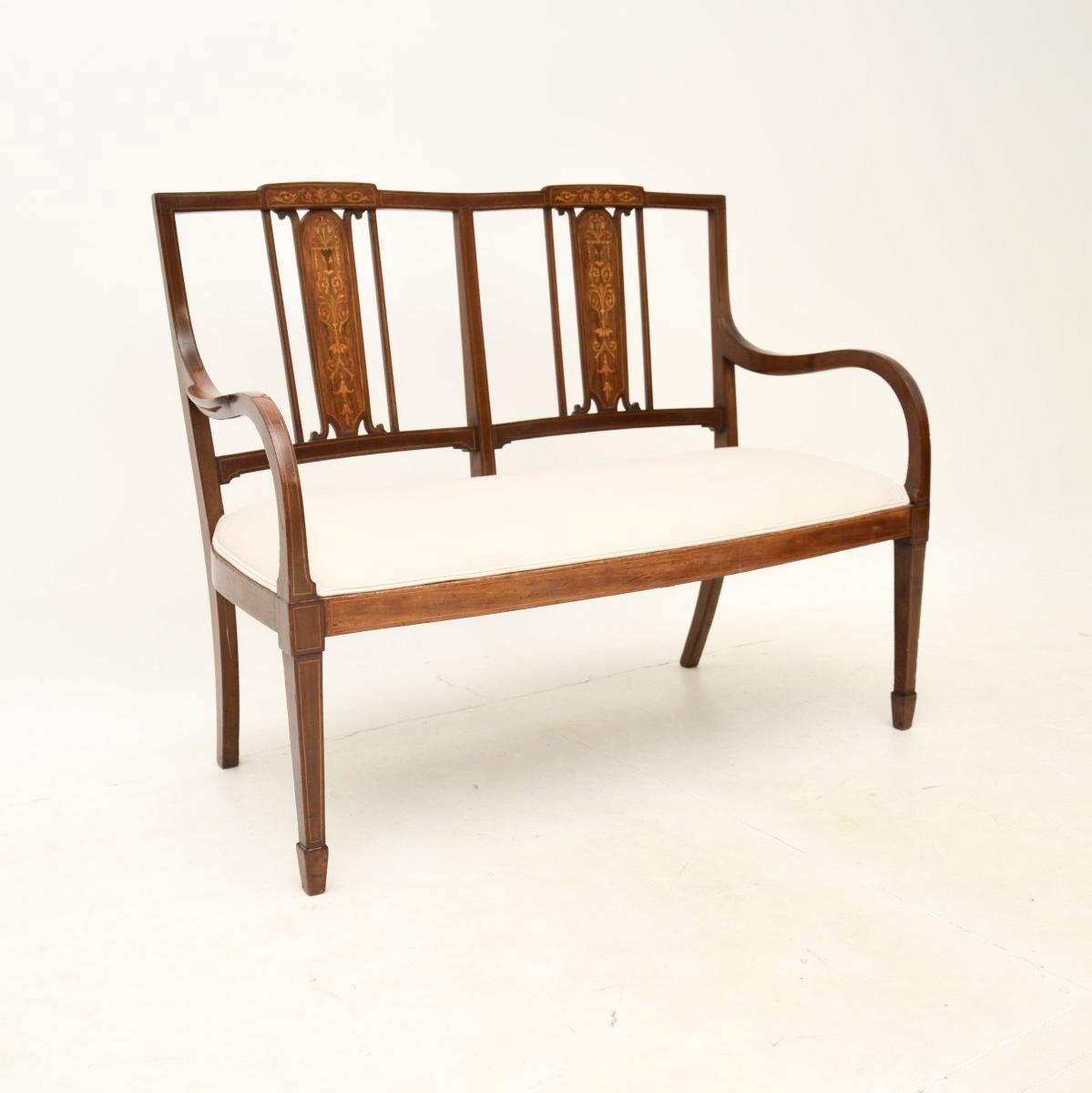Antique Edwardian Inlaid Mahogany Settee