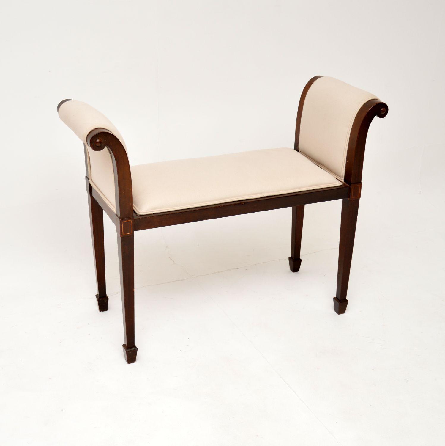 Antique Edwardian Inlaid Mahogany Stool Seat