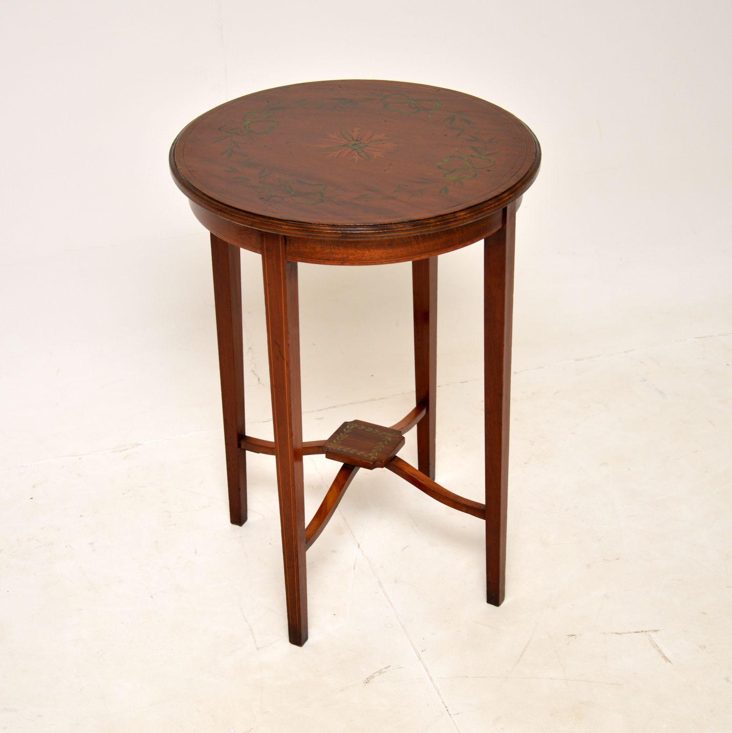Antique Edwardian Inlaid Satinwood Occasional Side Table (1 of 7)