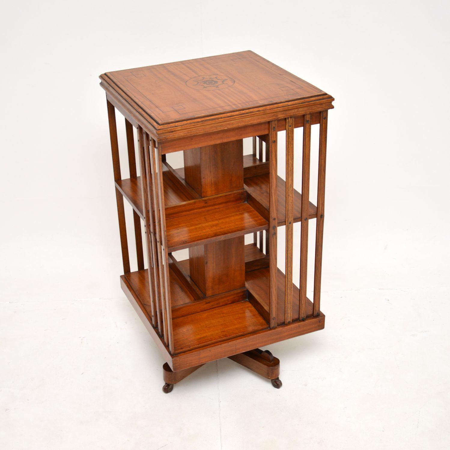 Antique Edwardian Inlaid Satinwood Revolving Bookcase