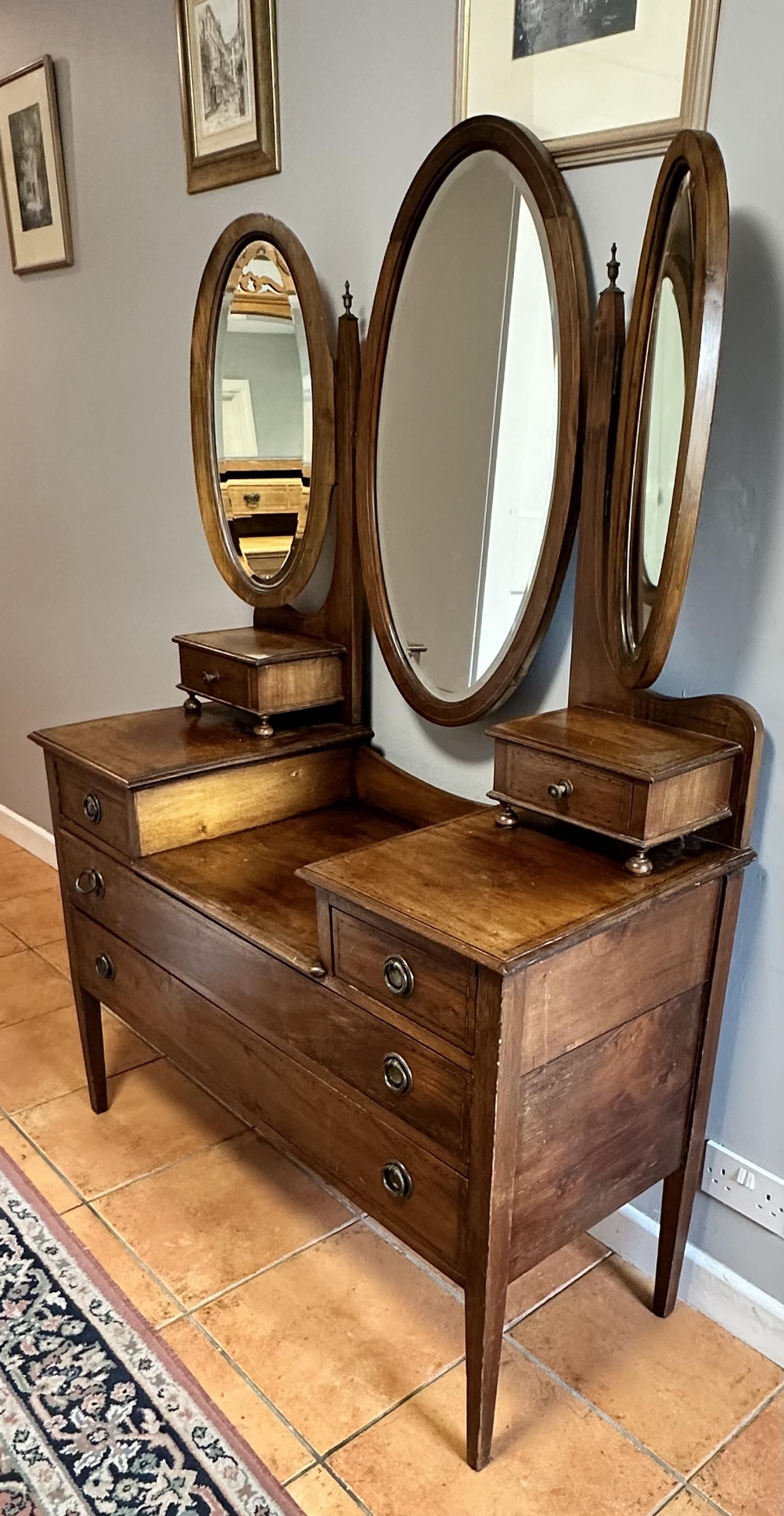 Antique Edwardian Inlaid Triple Mirror Dressing Table Vanity