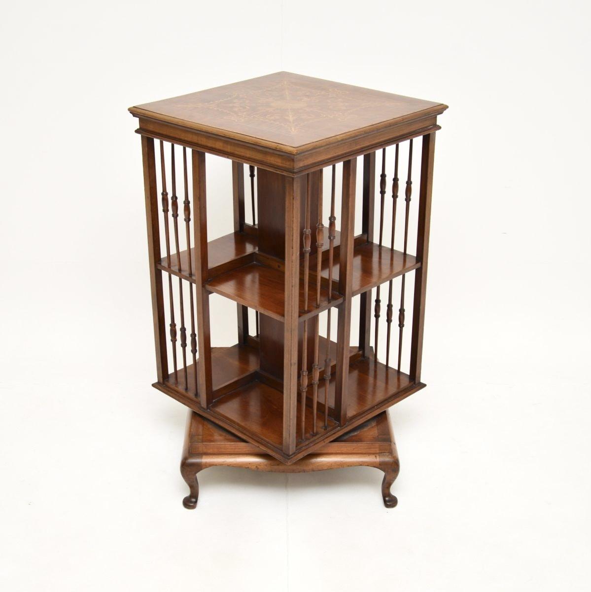 Antique Edwardian Inlaid Walnut Revolving Bookcase