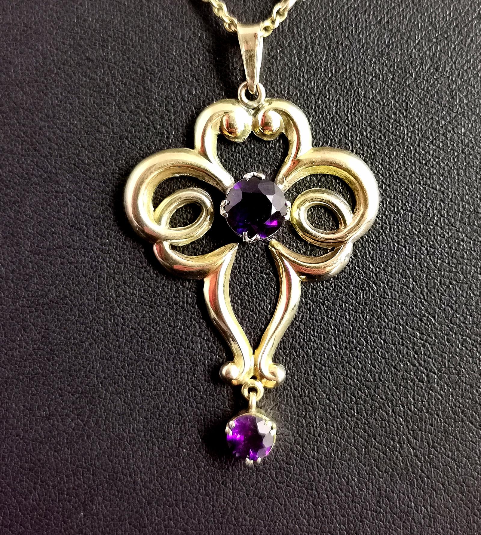 Antique Edwardian Lavalier Pendant, 9ct Gold and Amethyst