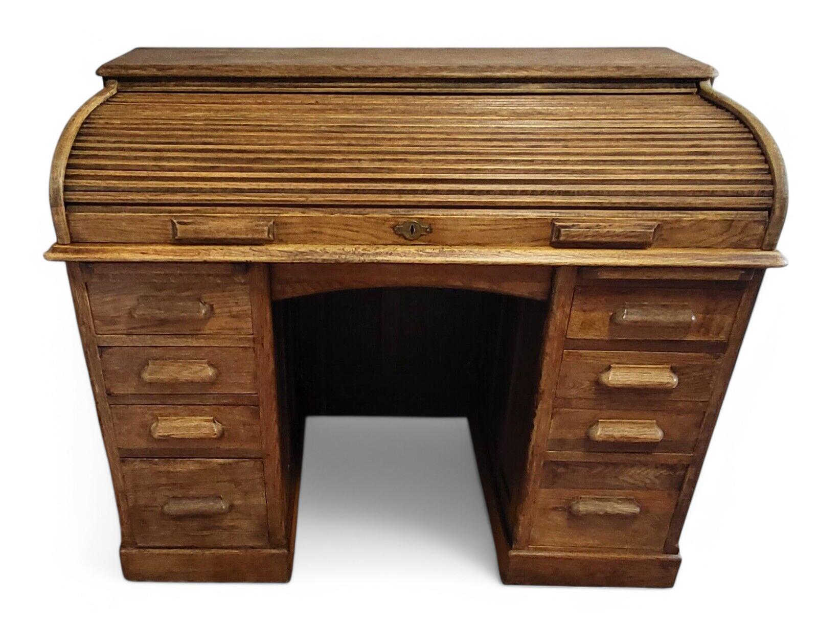 Antique Edwardian Lebus Roll Top Pedestal Desk