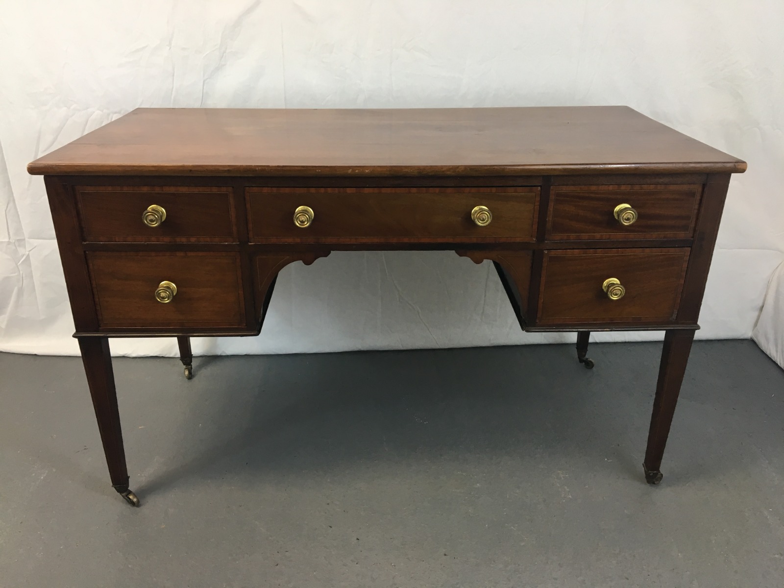 Antique Edwardian Mahogany Inlaid 5 Drawer Ladies Dressing Table - Desk