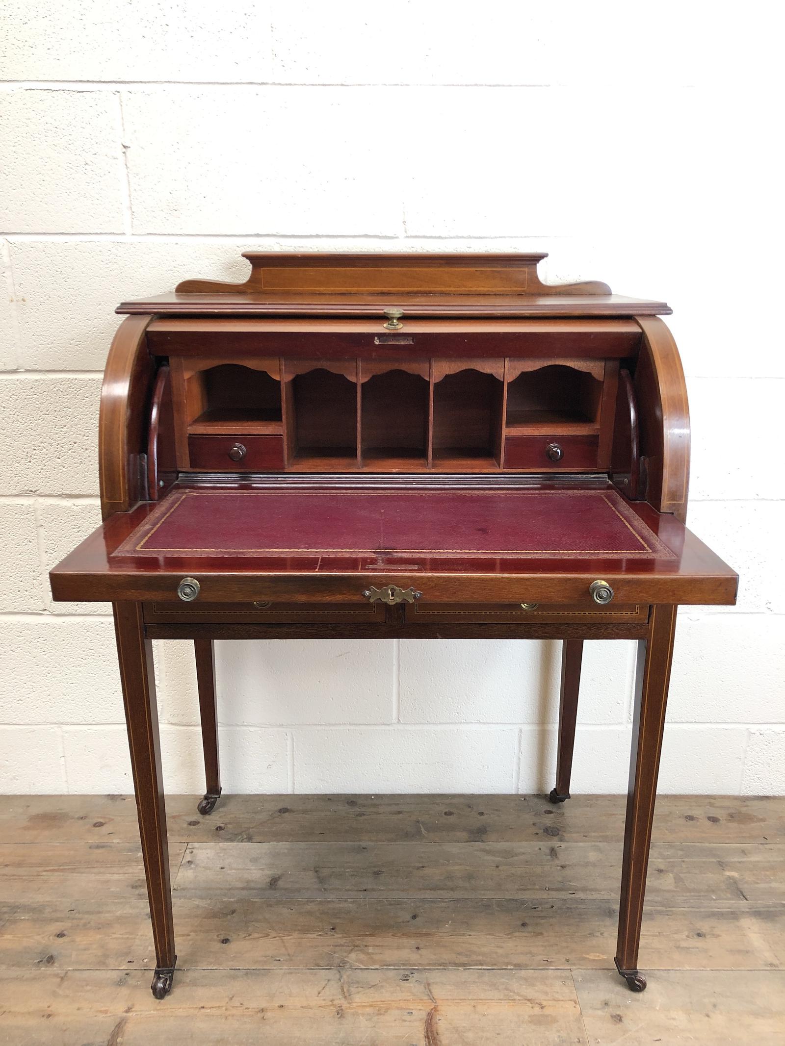 Antique Edwardian Mahogany Inlaid Cylinder Top Desk