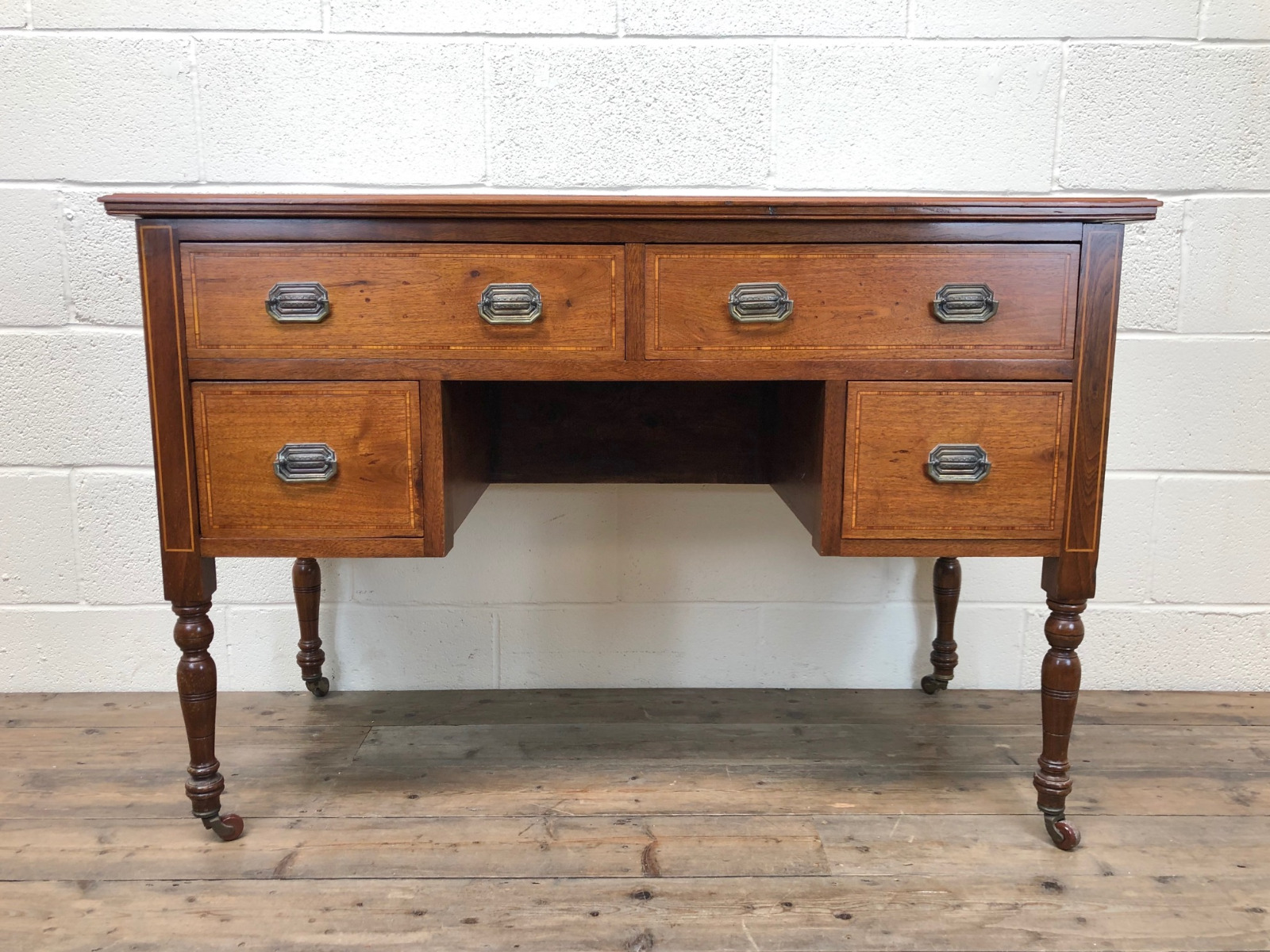 Antique Edwardian Mahogany Inlaid Desk with Leather Top (1 of 1)