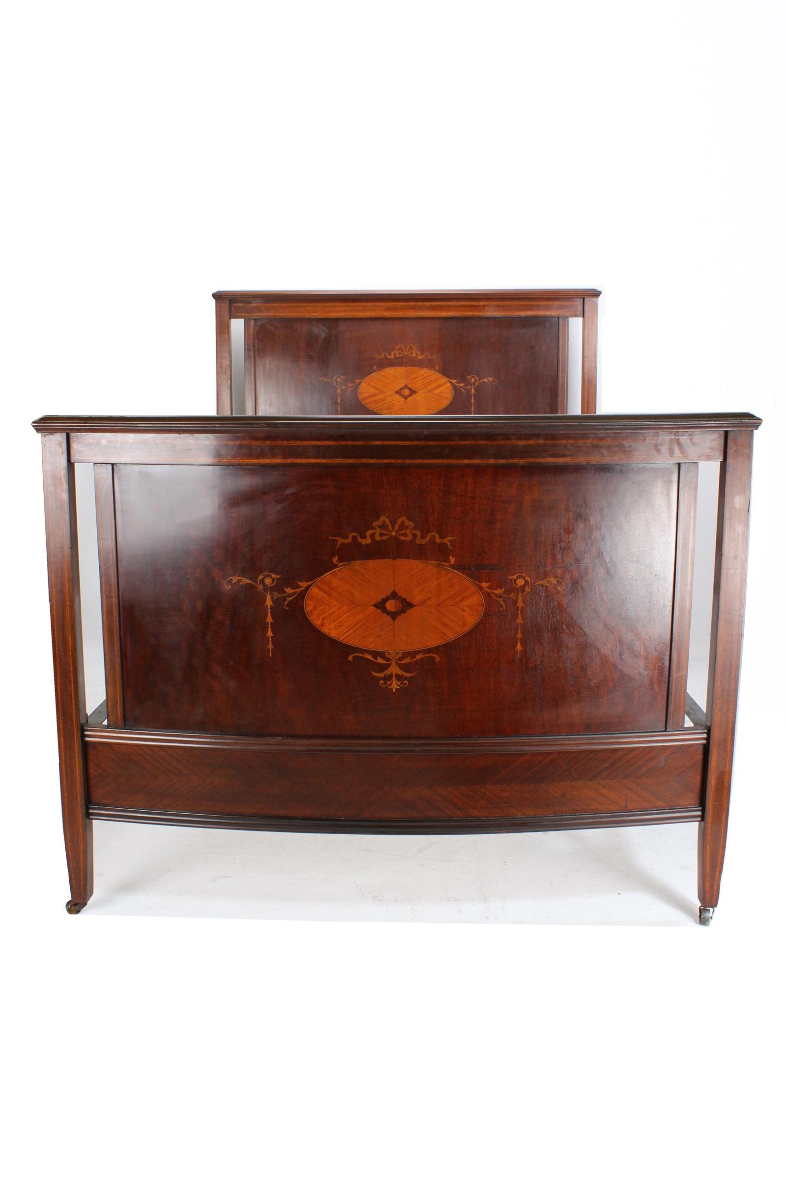 Antique Edwardian Mahogany & Inlaid Double Bed