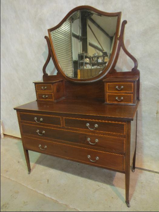 Antique Edwardian Mahogany Inlaid Dressing Chest