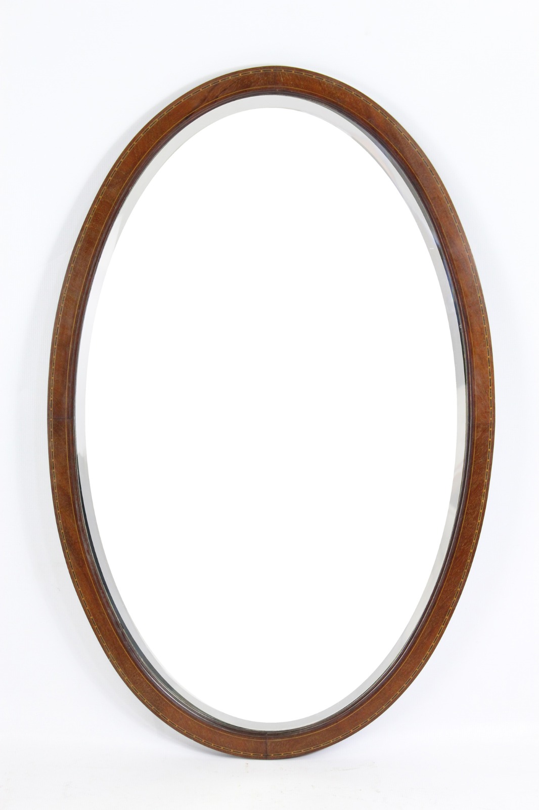 Antique Edwardian Mahogany & Inlaid Oval Mirror (1 of 1)
