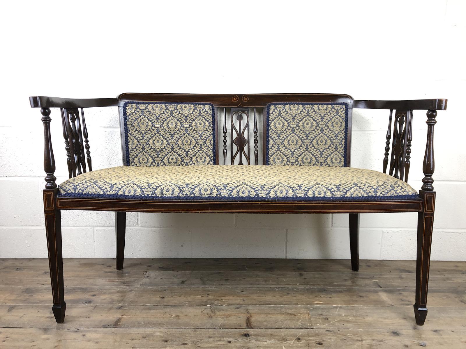 Antique Edwardian Mahogany Inlaid Parlour Sofa (1 of 15)