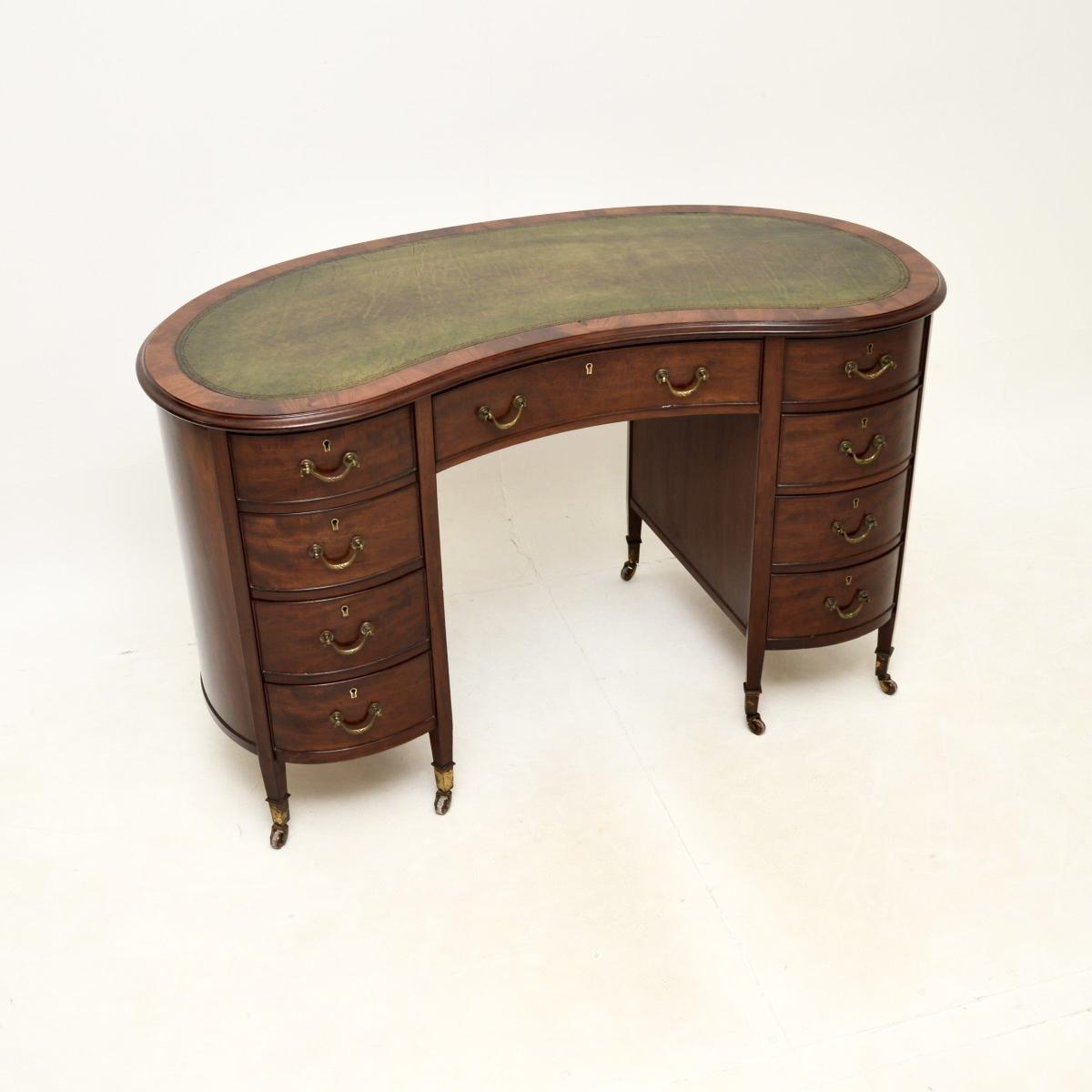 Antique Edwardian Mahogany Leather Top Kidney Shaped Desk