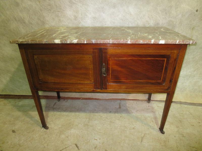 Antique Edwardian Mahogany Marble Top Inlaid Washstand