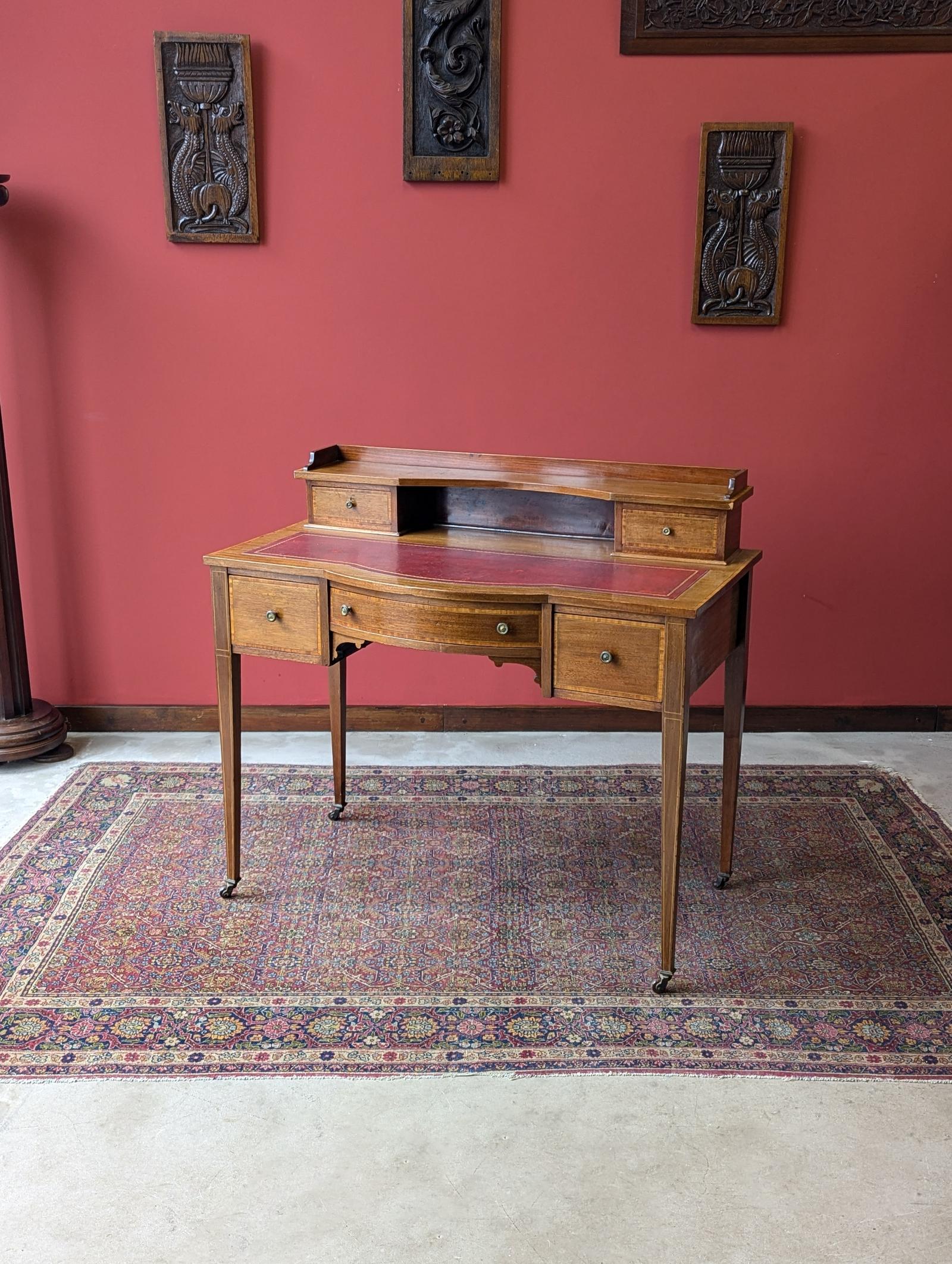 Antique Edwardian Mahogany Red Leather Writing Table Desk