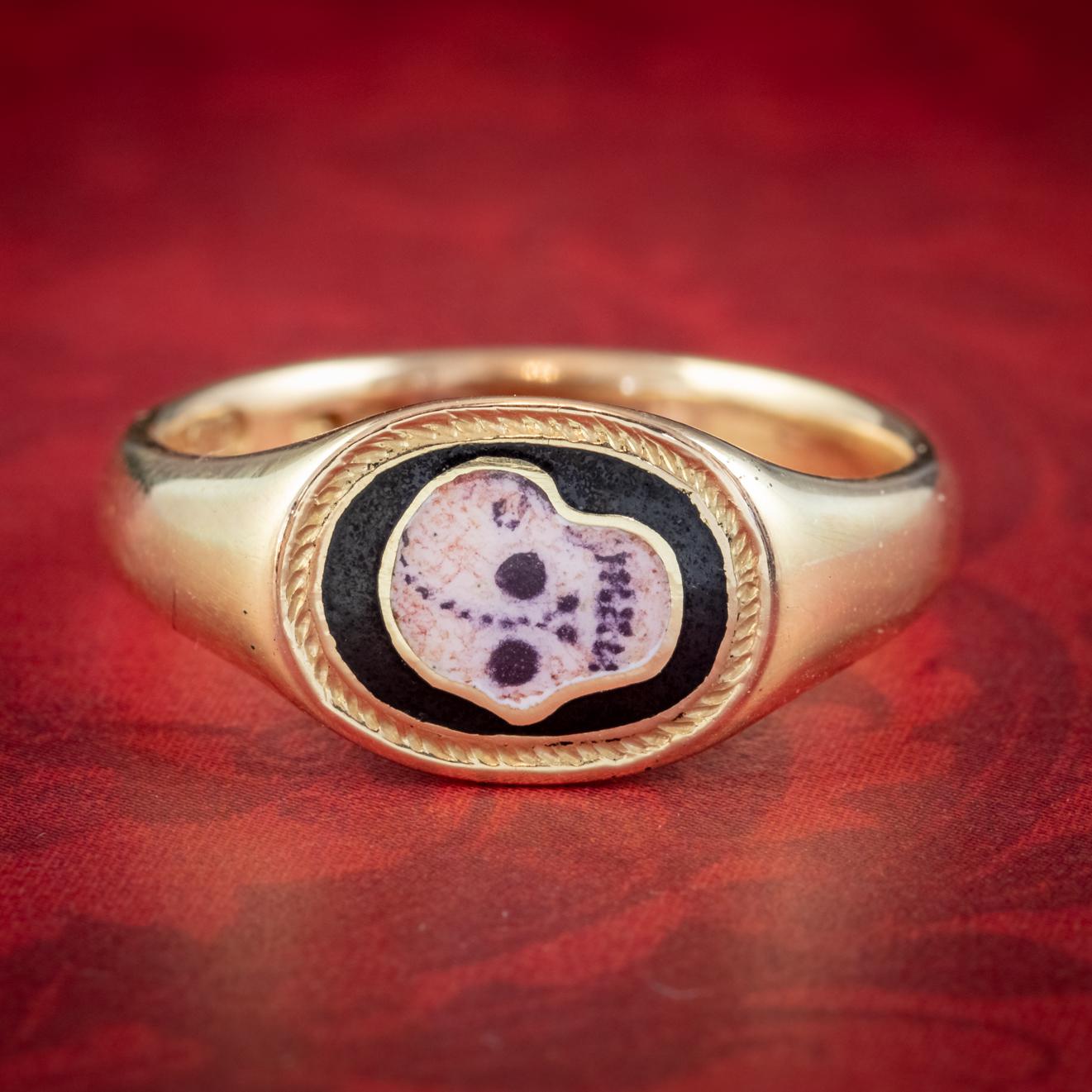 Antique Edwardian Memento Mori Skull Signet Ring 18ct Gold Dated 1902
