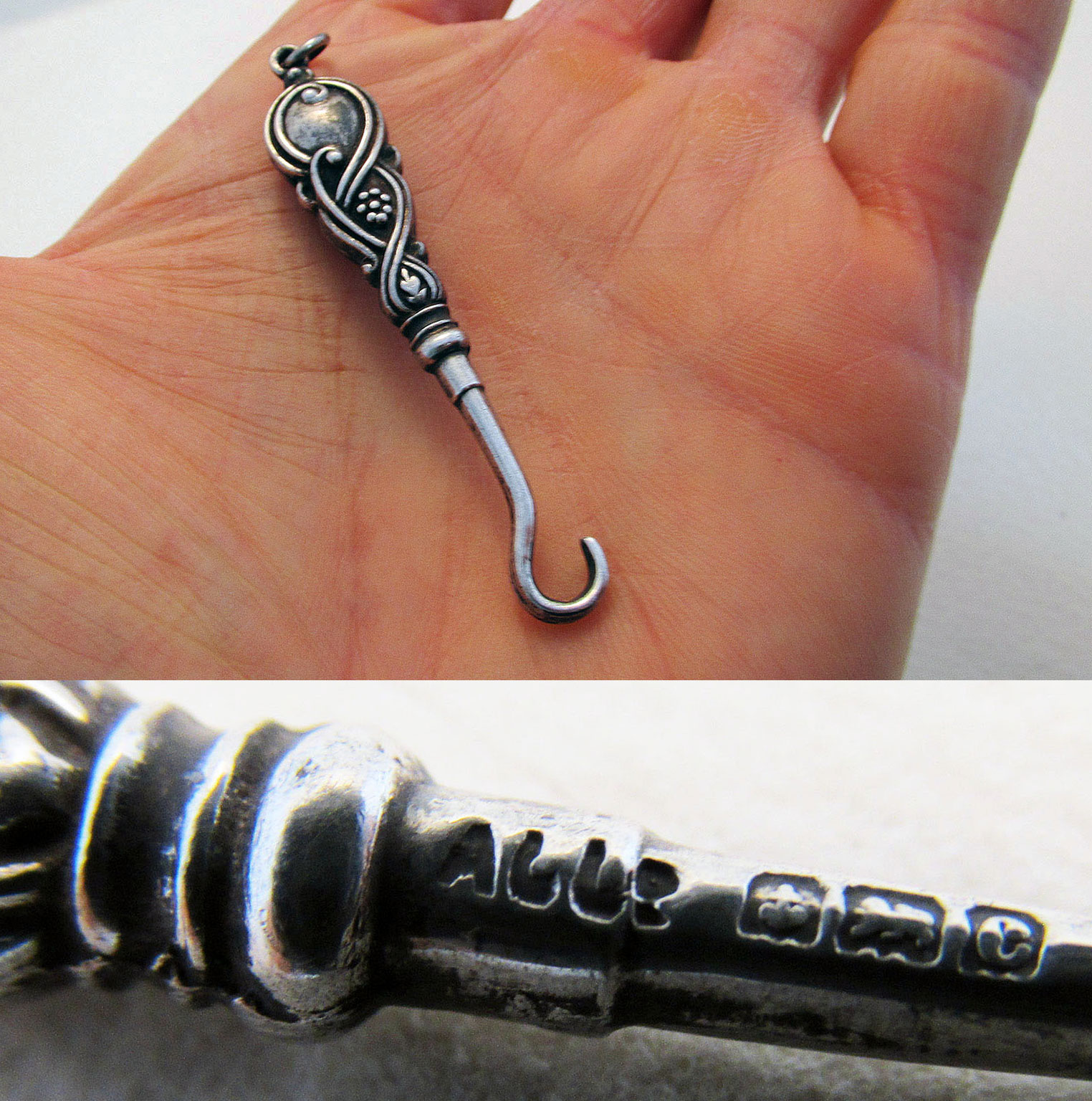 Antique Edwardian Miniature Solid Sterling Silver Hallmarked Button Hook Chatelaine Pendant Fob 1902