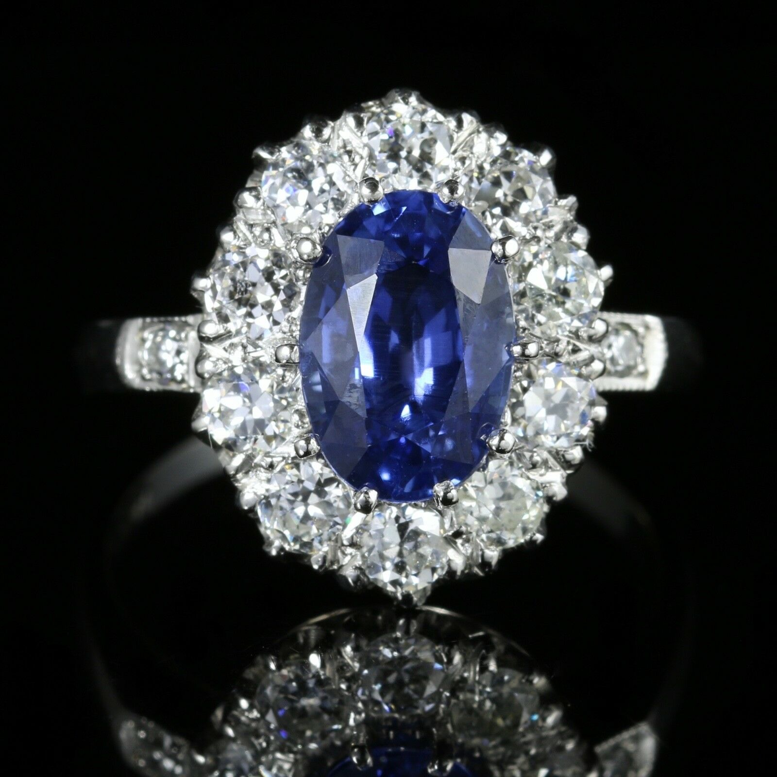 Antique Edwardian Natural Sapphire Diamond Ring Platinum c.1910