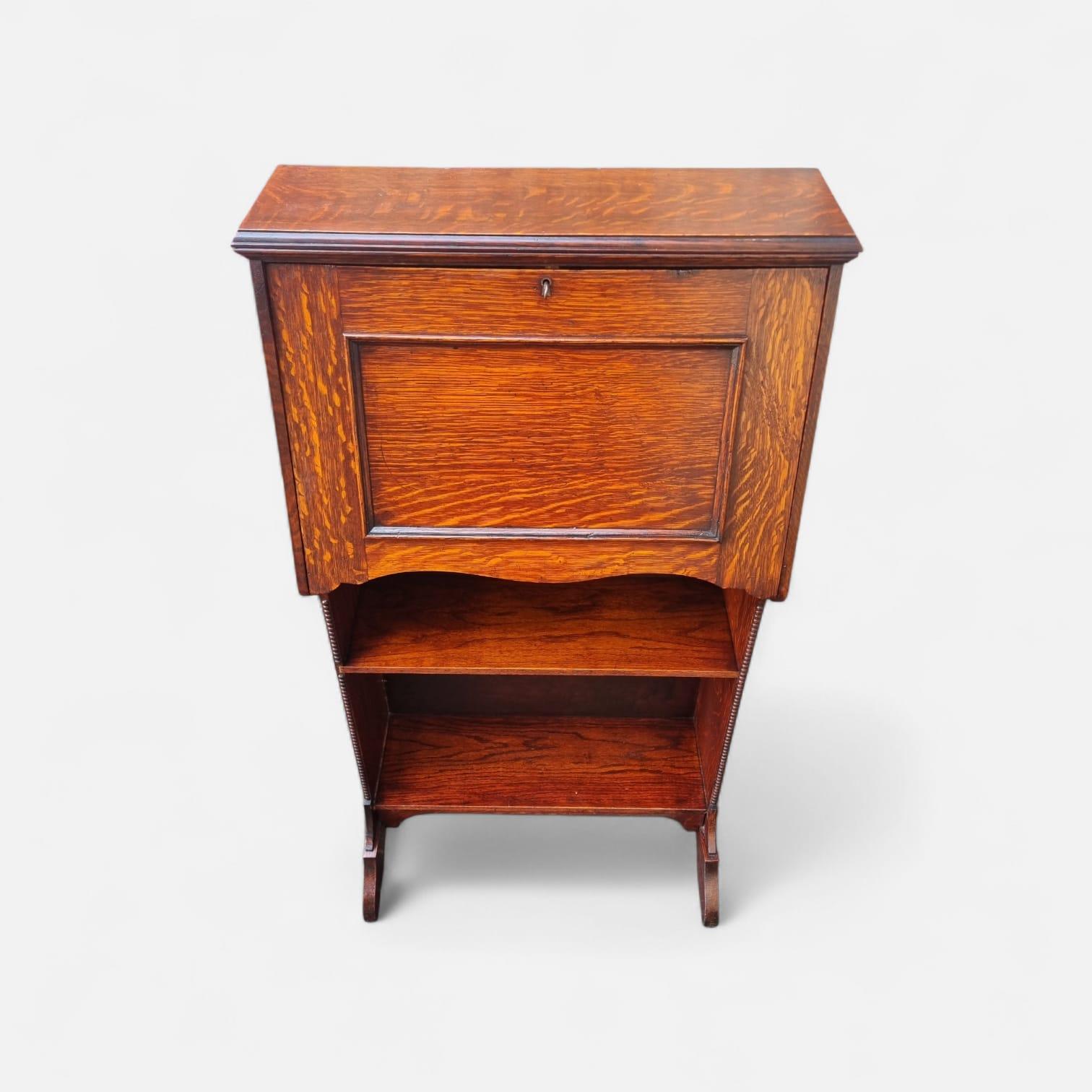 Antique Edwardian Oak Bureau Bookcase / c.1910 / Original Key / Golden Oak Grain