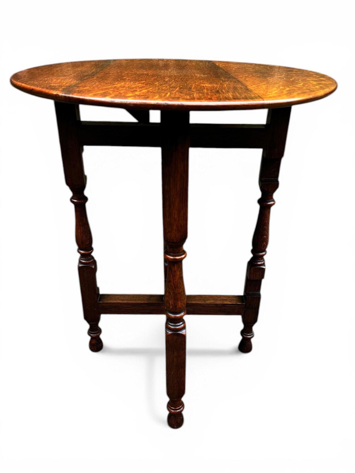 A beautiful and practical antique folding table, crafted from solid oak and featuring a classic gateleg design.
