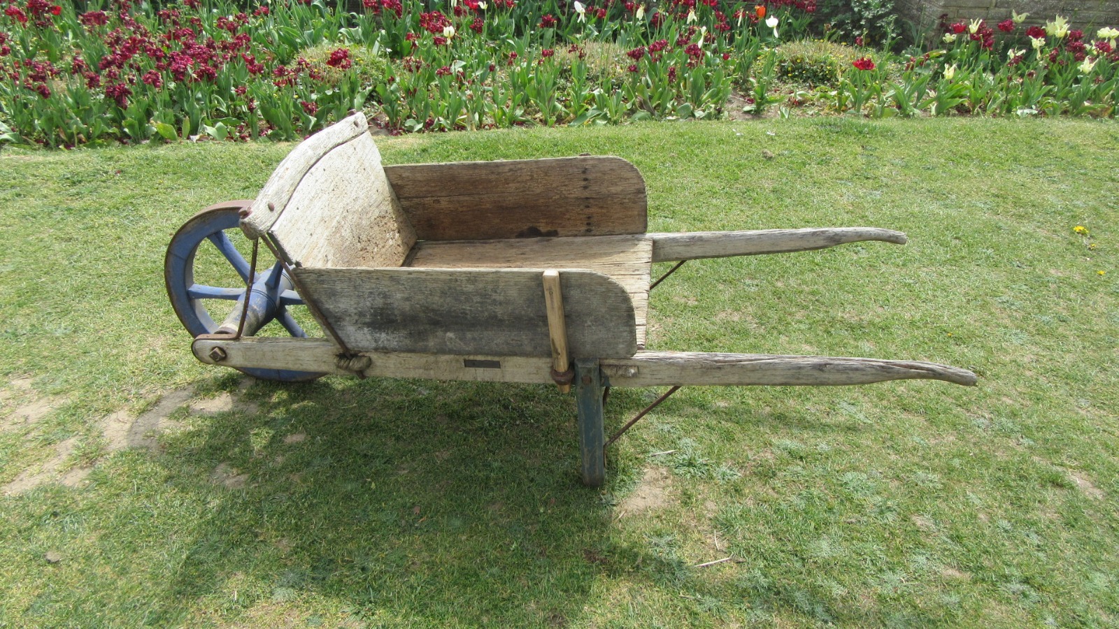 Antique Edwardian Oak Garden Wheelbarrow in the Original Paint