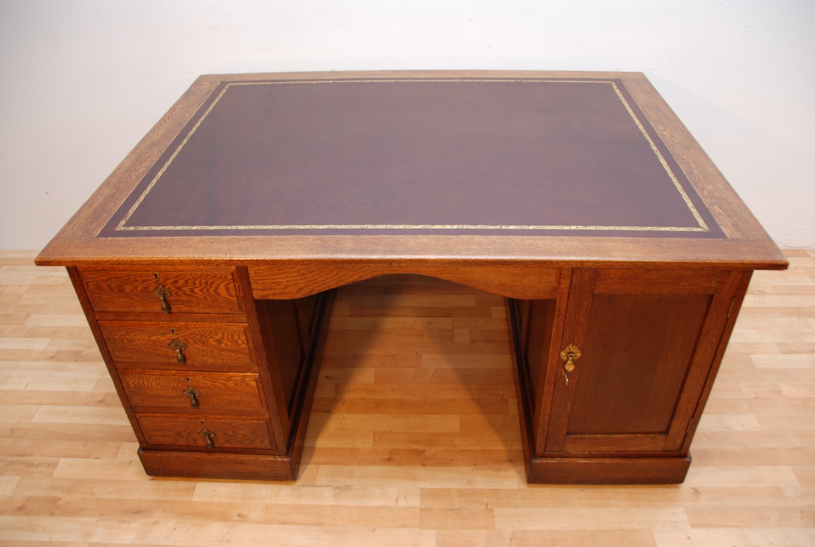 Antique Edwardian Oak Large Partners Writing Pedestal Desk