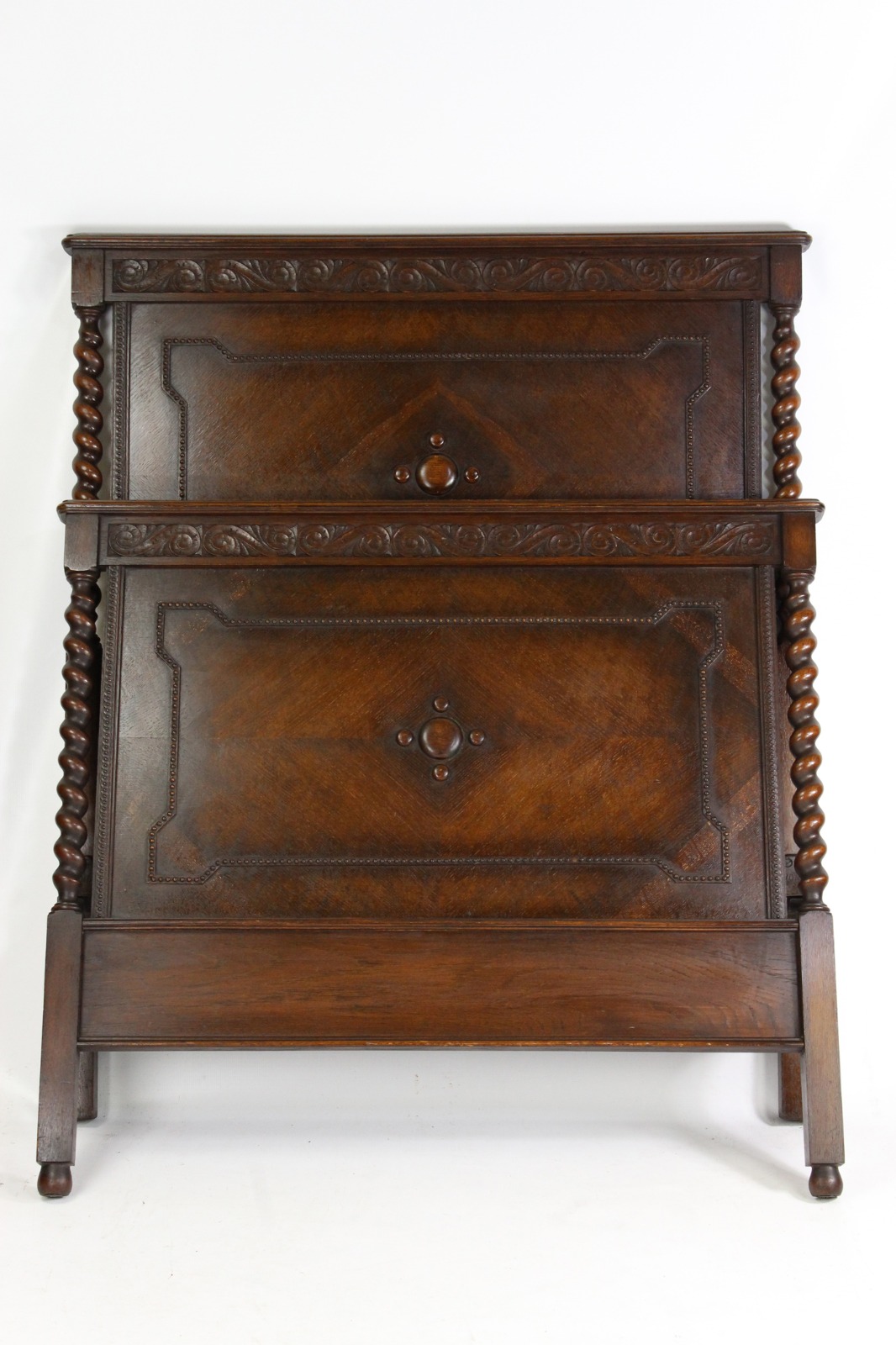 Antique Edwardian Oak Large Single Bed (1 of 1)