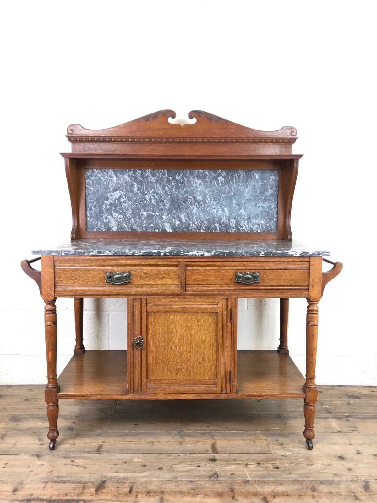 Antique Edwardian Oak & Marble Washstand Cupboard