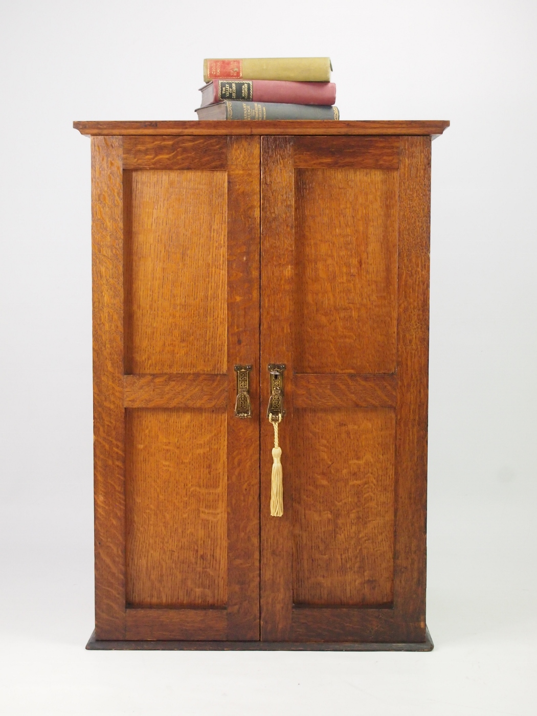 Antique Edwardian Oak Music Cupboard / Bookcase c.1904