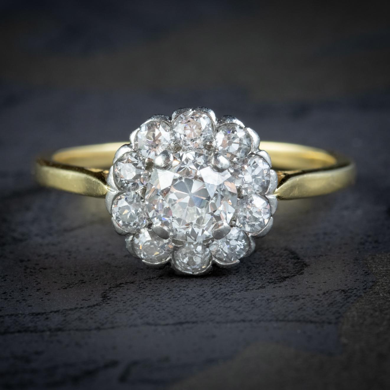 Antique Edwardian Old Cut Diamond Cluster Ring 18ct Gold 1.65ct Of Diamond Circa 1901