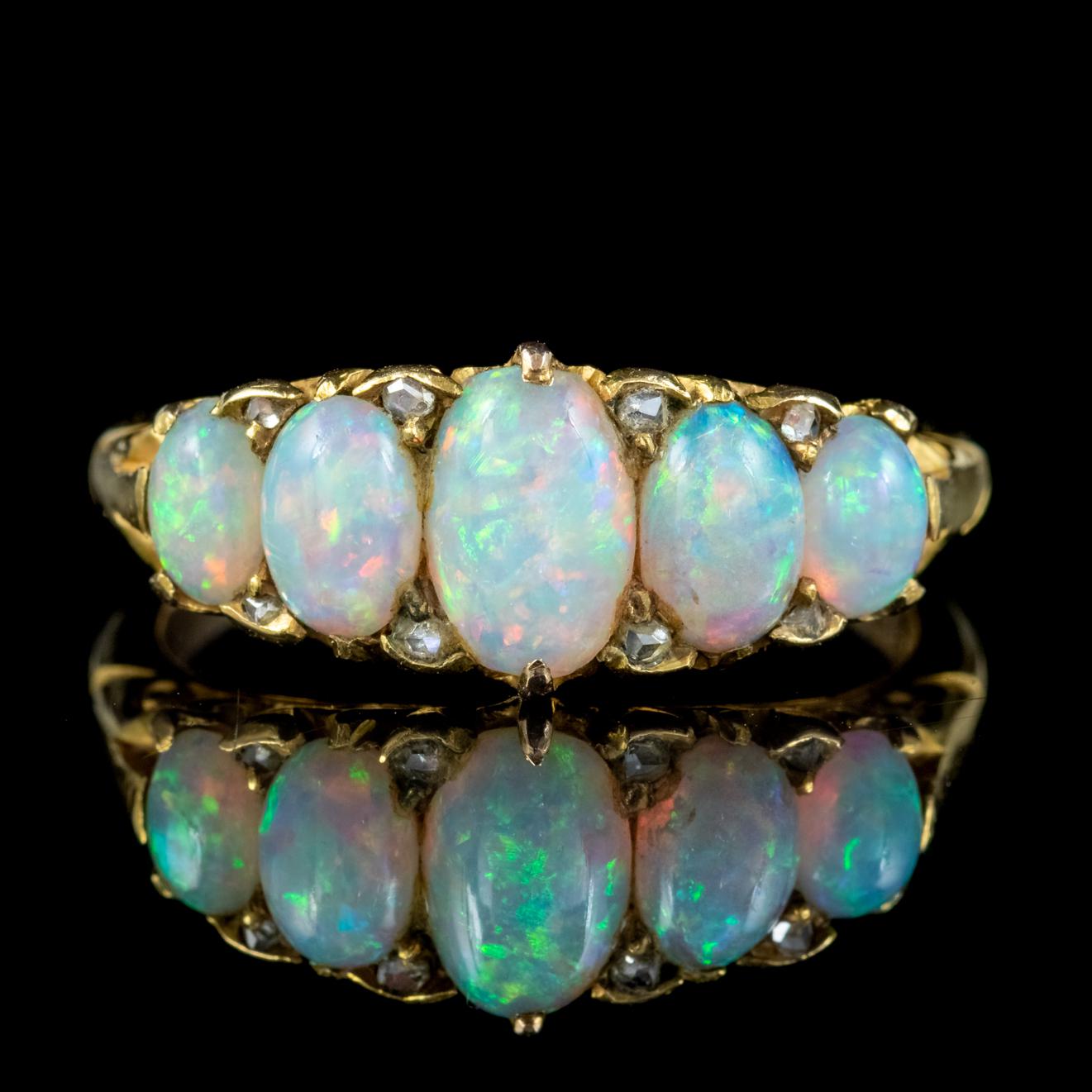 Antique Edwardian Opal Diamond Five Stone Ring 18ct Gold Dated 1902