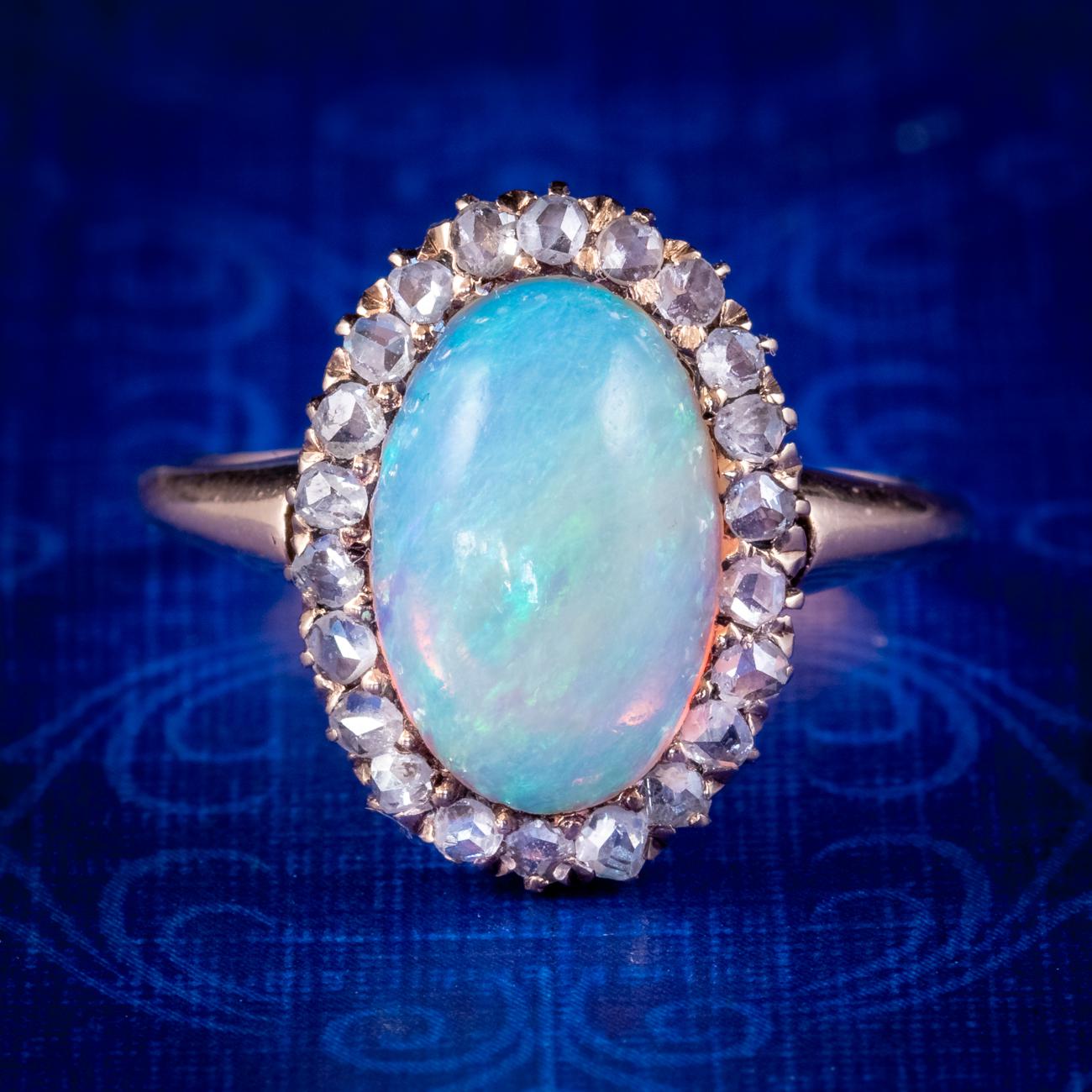 Antique Edwardian Opal Diamond Ring 15ct Gold 3ct Opal Circa 1901