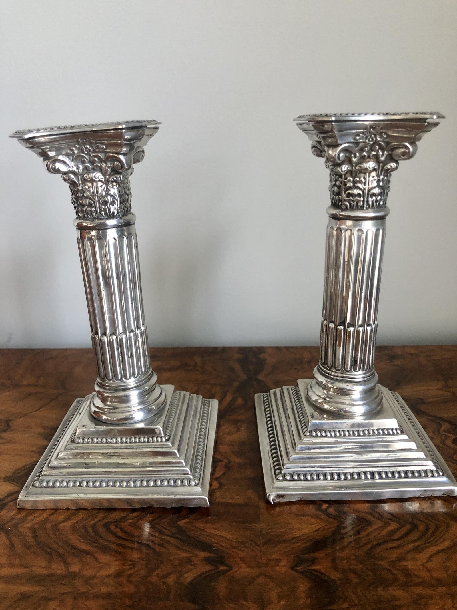 Antique Edwardian Pair of Sterling Silver Corinthian Candlesticks By Nathan & Hayes (1 of 7)