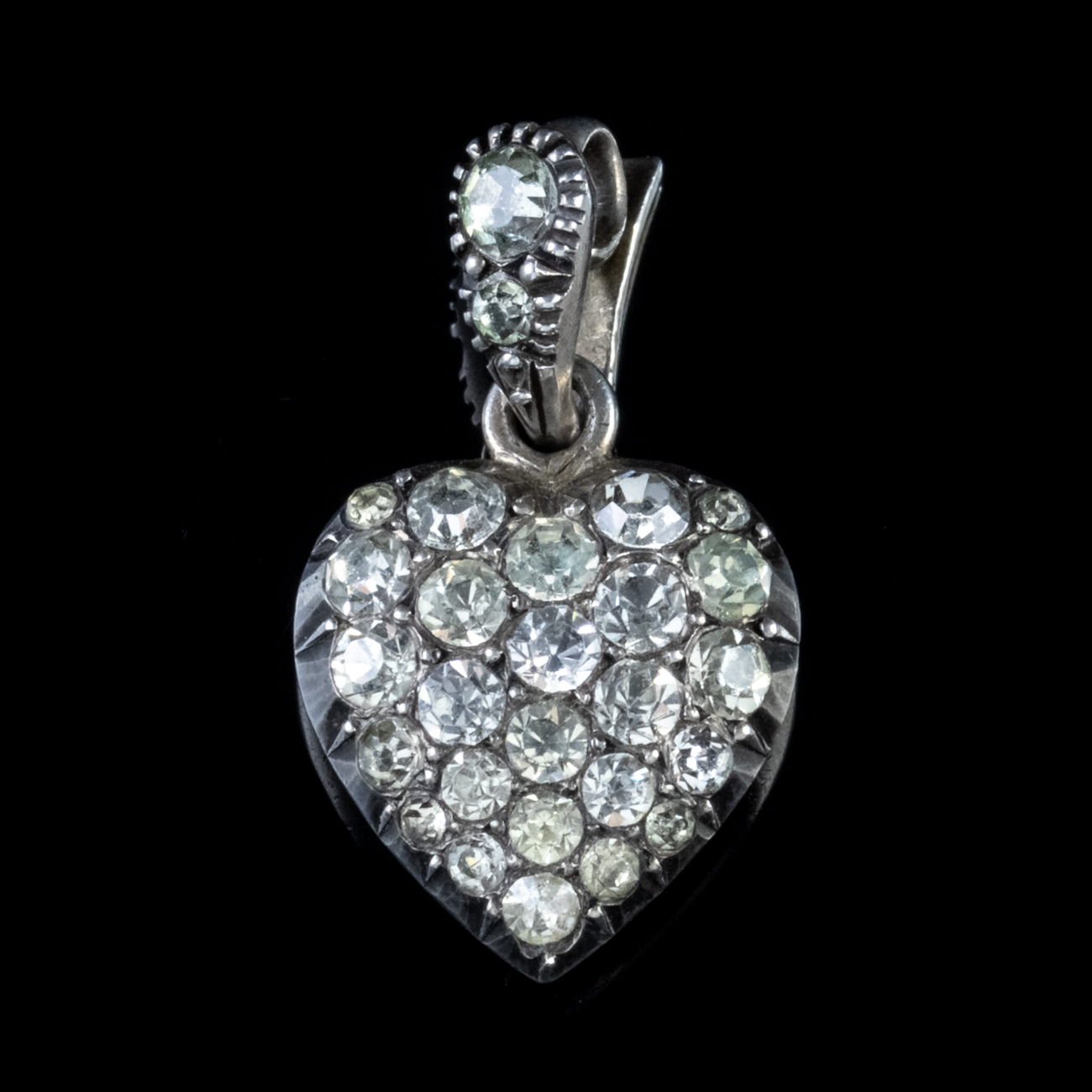 Antique Edwardian Paste Heart Pendant Silver circa 1910
